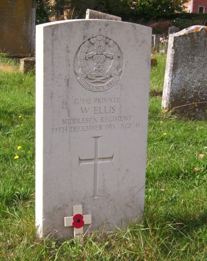 Posted: 11/11/2012 Filed under: Family, History | Tags: Bagthorpe Military Hospital, Menin Road, Middlesex Regiment, Nottingham, Somersham, William Ellis, Ypres Leave a commentToday is Remembrance Day and I’m posting this picture in remembrance of my great-grandfather William Ellis. William was a private in the 4th Battalion of the Middlesex Regiment and died at Bagthorpe Military Hospital in Nottingham as a result of gunshot wounds sustained in action near Ypres in Belgium in 1915. He is buried in his home village of Somersham in Huntingdonshire.