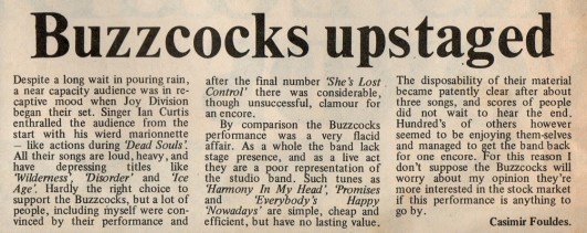 Posted: 20/03/2012 Filed under: Magazines, Music | Tags: Casimir Fouldes, Ian Curtis, Joy Division, Leeds Student, The Buzzcocks, The Guardian 2 Comments
