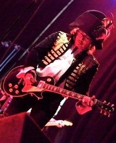 Tonight, the opening date of his biggest tour in years, Adam strolls out in his finest French Revolutionary outfit. Two hours later, having disrobed layer by layer – first the tight-fitting, gold-braided jacket, then the airy linen shirt and finally, at the end, the Adam Ant vest (oh yes, he’s wearing his own merchandising) – he leaves the stage stripped to waist, which isn’t a pretty sight. He’s not what you would call chubby, but he’s had considerably more pies than Iggy Pop. His Napoleon hat remains firmly jammed on his head all night long, though. It doesn’t move a millimetre. It must have been superglued on, unlike his awkwardly large, black-rimmed spectacles, which he keeps having to push back up his nose with his index finger. Every time that he does it, I can’t help but think of Ronnie Corbett sitting on his big chair telling a shaggy dog story.